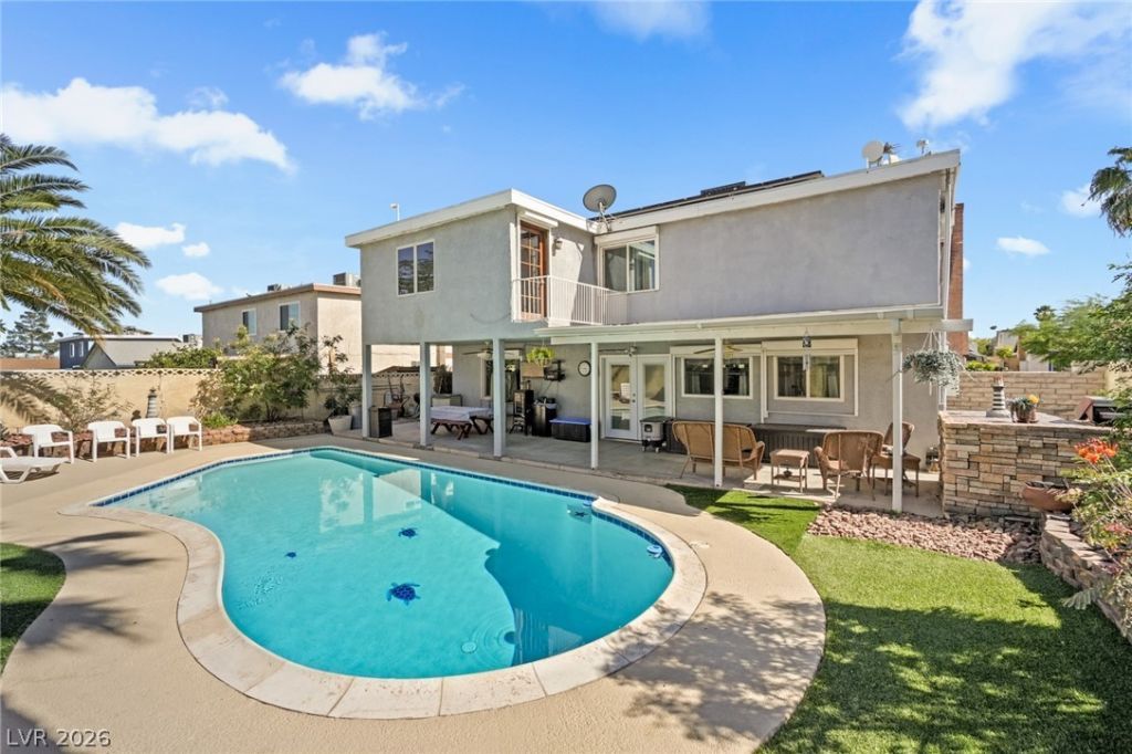 Beautiful 3-Bedroom Pool Home. This two-story home offers 3 bedrooms and 2.5 bathrooms, with all located conveniently located upstairs for added privacy. The functional floor plan provides comfortable living and entertaining space throughout. The kitchen is equipped with Stainless steel appliances and opens to main living areas, creating a seamless flow for everyday living. Step outside to a beautifully landscaped backyard featuring a sparkling pool and covered patio ideal for relaxing or entertaining. The property also offers possible RV parking, adding flexibility and convenience. Additional highlights include a 2 car garage and leased solar panels for improved energy efficiency. This home combines comfort, functionality and outdoor enjoyment... ready for its next owner to move in and enjoy.